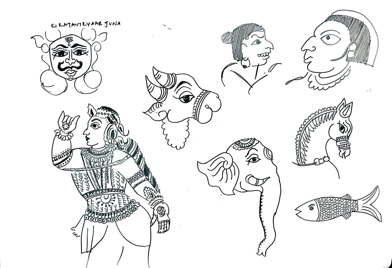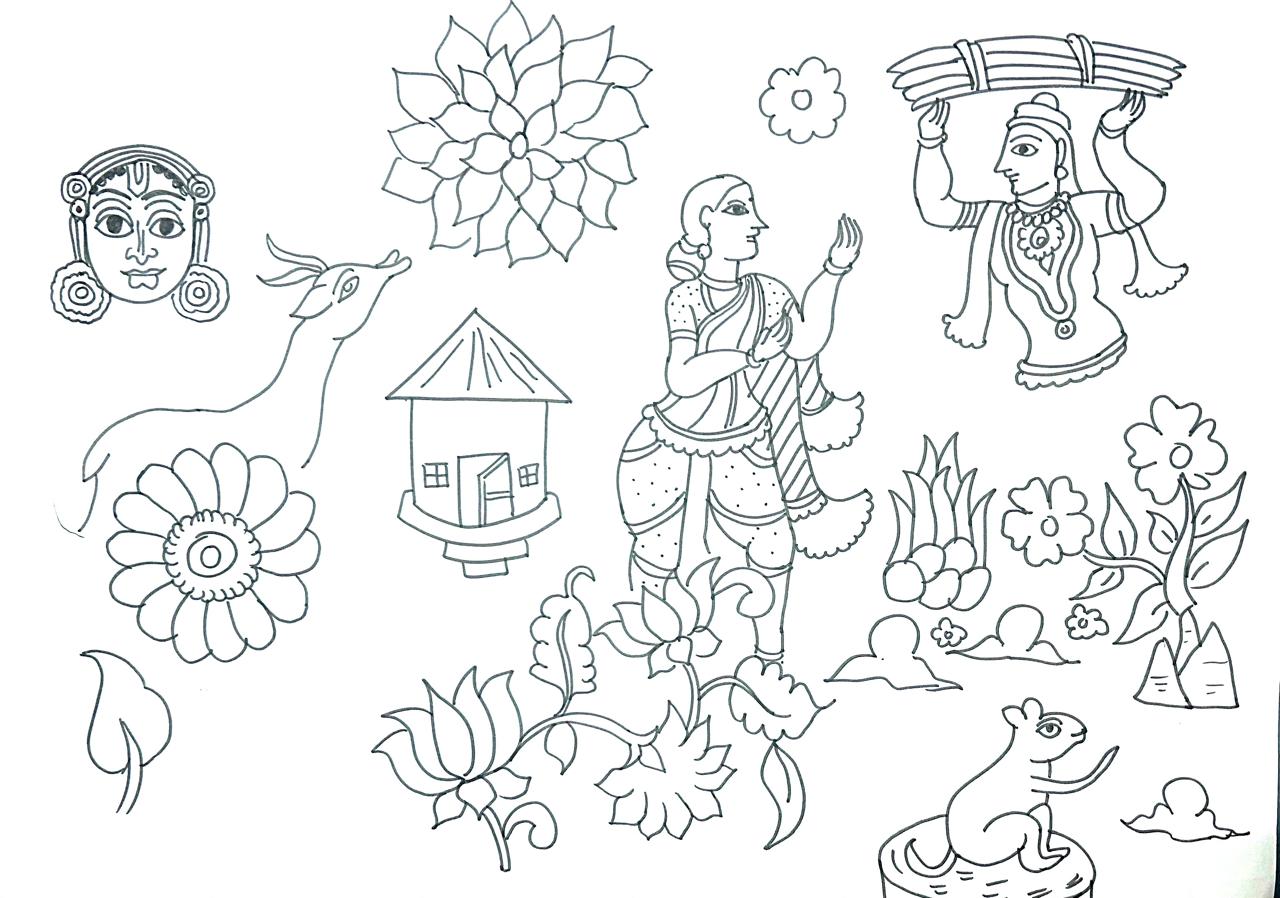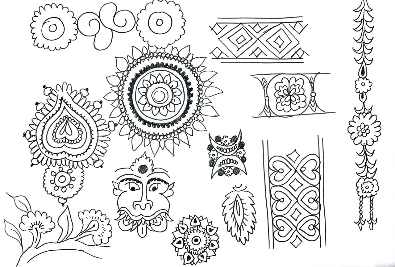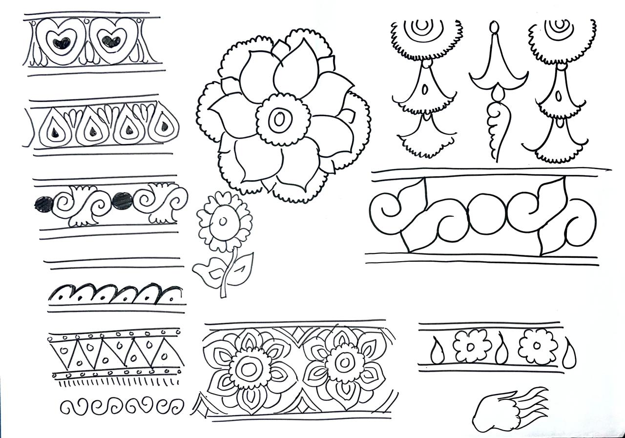 After the interviews and visits, I studied Kalamkari through books and reference images, sketching motifs to understand its natural flow and composition.