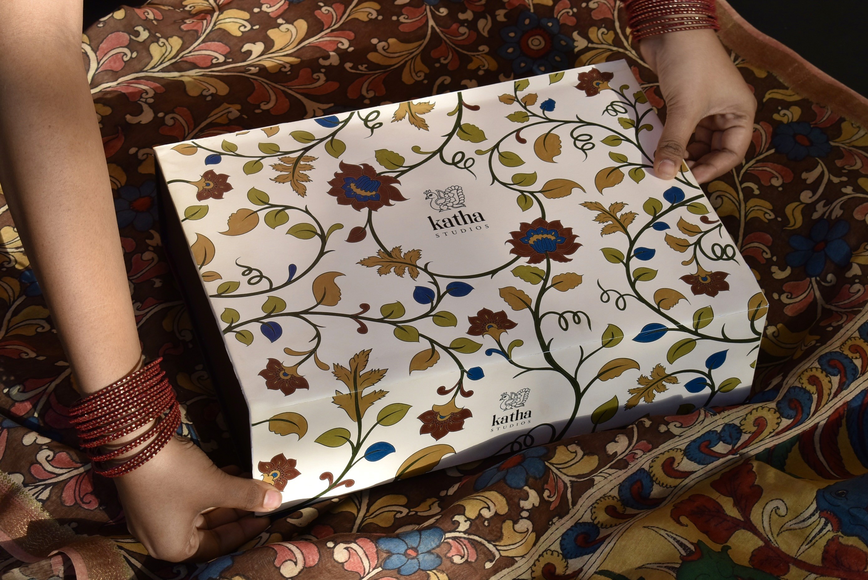 Katha is a packaging design project that showcases authentic hand-painted Pen Kalamkari. It uses packaging as a medium for visual storytelling, highlighting the craft's process, care, and authenticity.