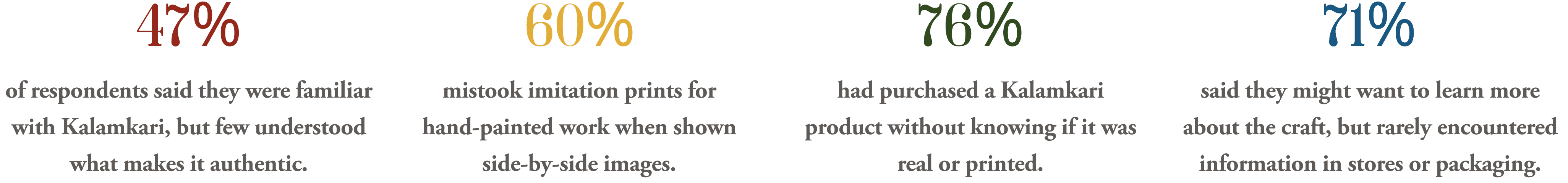 Survey and field research revealed key gaps in how people perceive, identify, and value Kalamkari.