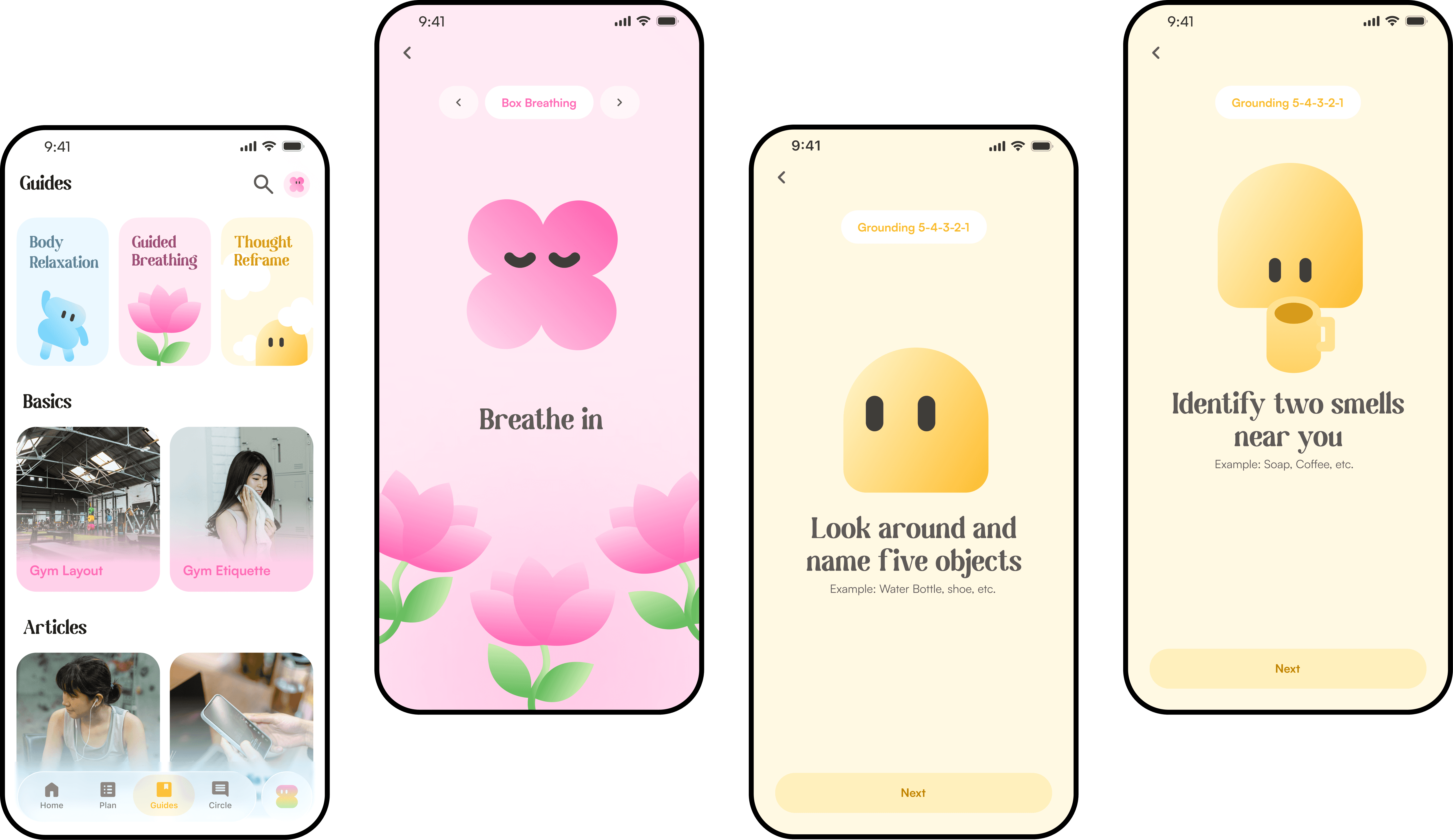Started with quick sketches exploring calm, approachable layouts that didn’t overwhelm the user.