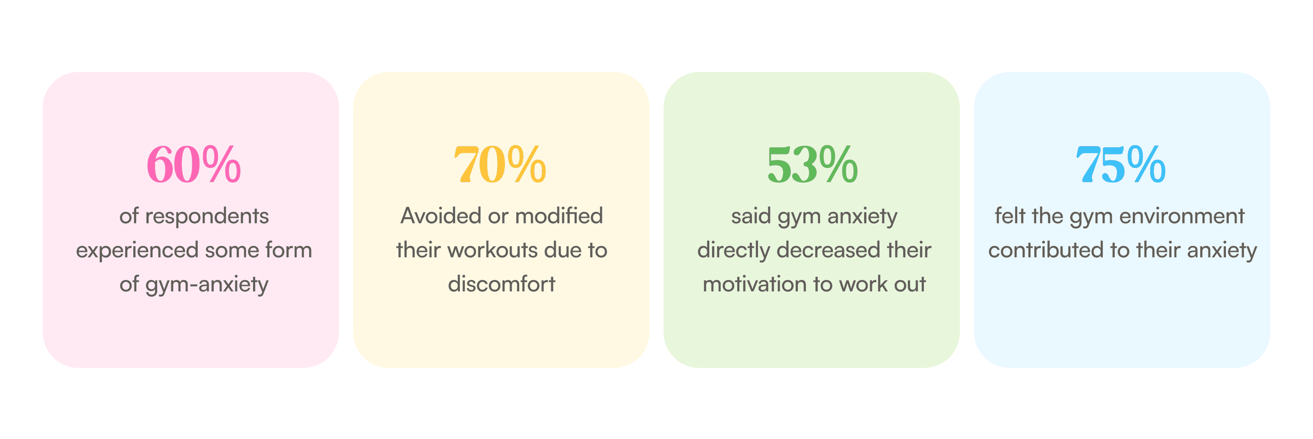 I conducted surveys and interviews with over 170 participants, including beginners, regular gym-goers, and trainers, to understand how gym anxiety affects behaviour, motivation, and consistency.