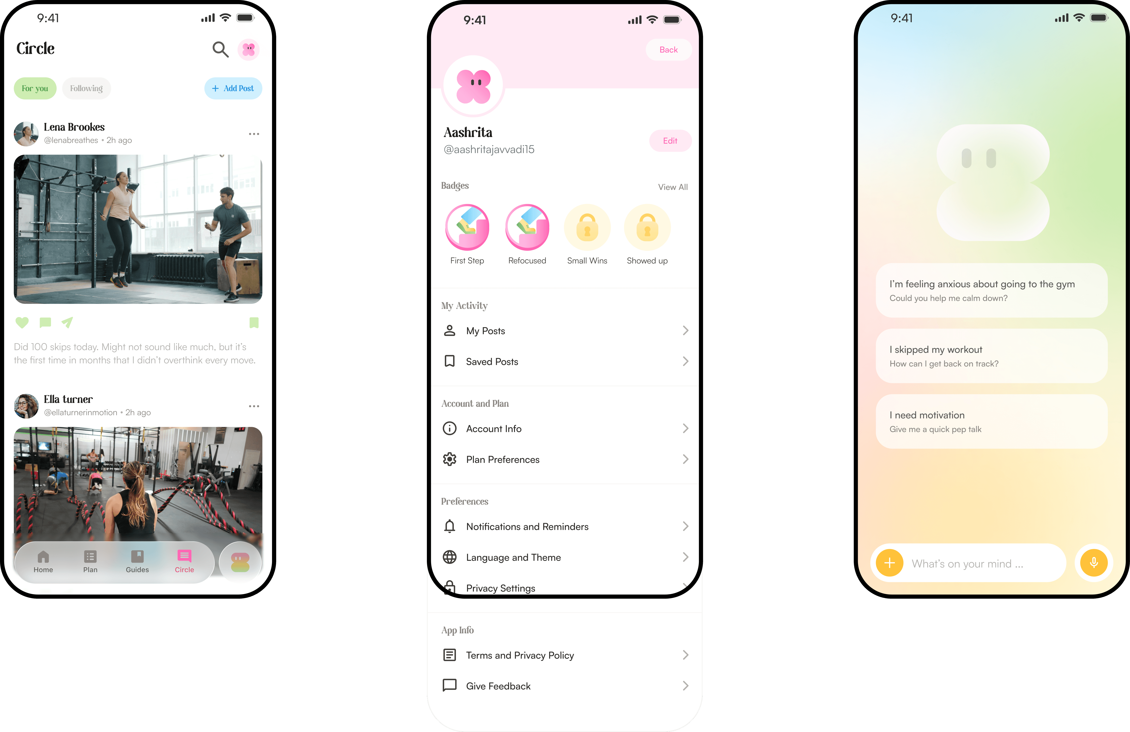 A social space to share small wins, find encouragement, and connect with others managing gym anxiety. It helps users feel less alone and builds a sense of progress through community.